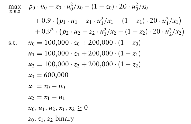 → 이때 결정변수 u는 discrete한 값으로, 10만 또는 20만 배럴만 채굴할 수 있음.