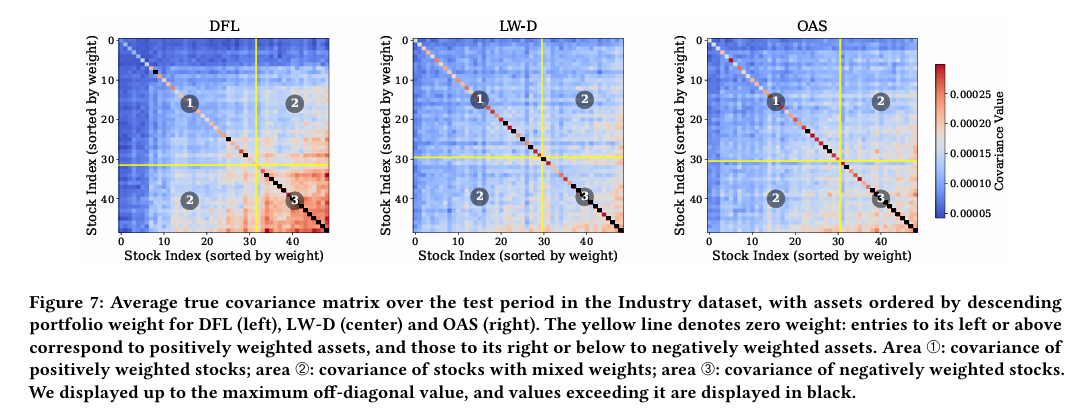 따라서 DFL이 의사결정을 위해 공분산을 더 효과적으로 예측할 뿐만 아니라, 견고하고 저변동성 포트폴리오 가중치와 자연스럽게 맞는 정밀도 행렬 구조를 생성한다.