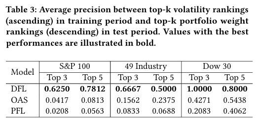 - DFL이 안정적인 자산 선정 기준을 제공하고, 시간에 따른 견고함을 보이며, 훈련 기간의 변동성과도 상관관계가 있고, GMVP 구성에 대한 의사결정 해석 가능성을 보인다.