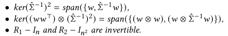 이 경우 $JJ^T$ (가중치 공간) 와 $J^TJ$ (공분산 공간) 에 대해 동일한 고유값을 갖는 적어도 두개의 $\hat \sum$ -invariant한 특이 벡터(singular vector)가 존재하며, 각각 Assumption의 첫 번째 span, 두 번째 span에 속한다.