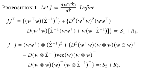 여기서 ⊗는 Kronecker product를 의미하며, $D = 1^T \hat \sum^{-1}1$ 이다.