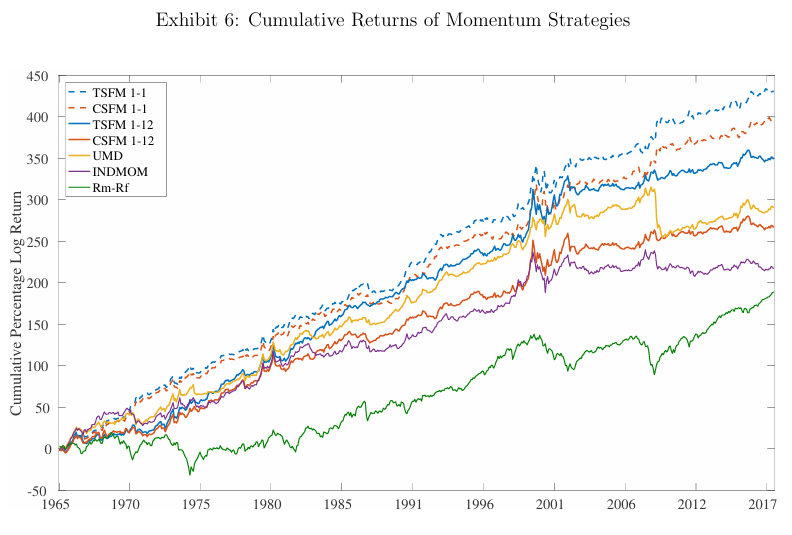 위 그림은 TSFM과 CSFM에 대해 기대수익률과 UMD, INDMOM, STR 전략 대비 알파값을 비교한 그림이다.