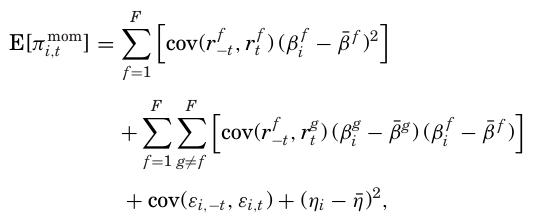 개인적으로 기억에 남는 것은 주식 모멘텀의 수익을 수식으로 풀어서 팩터 로딩으로 인해 발생한다는 것을 보였다는 것이다. 기존 논문들에서는 “여러가지 실험을 해보니 무슨 짓을 해도 팩터 모멘텀이 다른 모멘텀을 포함하더라” 같은 느낌이었다면, 이 논문에서는 그 원인을 이론적으로 풀어낸 것이 인상깊었다. 팩터의 개수도 모멘텀에 영향을 준다는 점 또한 새롭게 알게 된 사실이었다. 역시 탑저널에 실린 논문들은 정말 배워가는 것이 많은 것 같다.