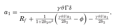 KNS에 따르면, $a_1$ 을 미정계수법을 사용하여 차익거래자의 1차 조건(FOC, $E_t[R_{t+1}]-\gamma Var_t(R_{t+1}) y_t = 0$ )과 시장 균형 조건($Ny_t+\delta \xi_t=0$)을 결합하여 해결할 수 있다.